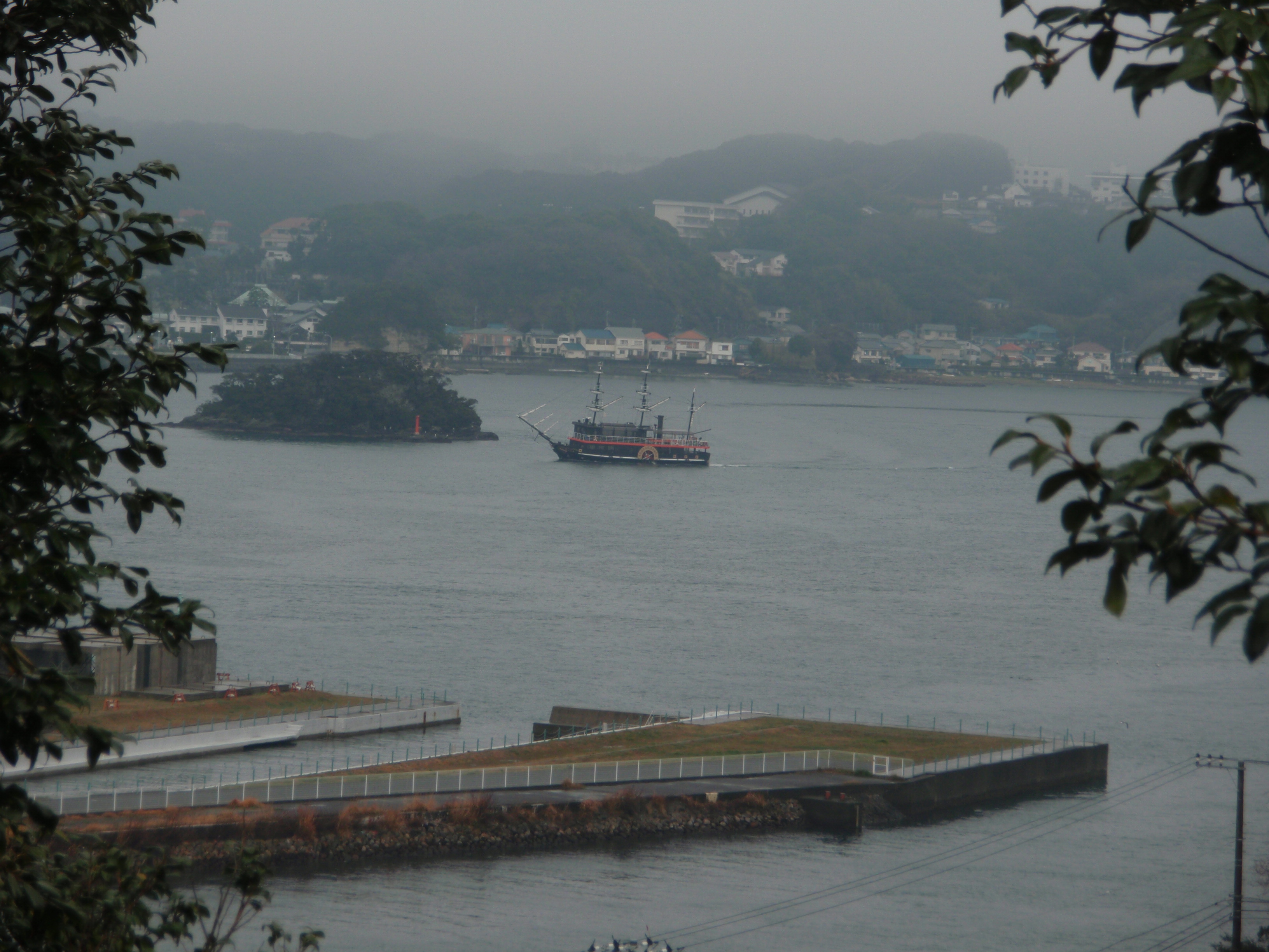 展望台までは行かなかったのですが、途中から港が見えて、「黒船」発見