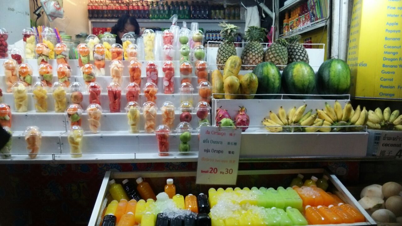ディナーでもマンゴーシェイクを飲み、帰りにナイトバザールでお土産にドライマンゴーを買い、さらにカットフルーツやさんでマンゴーを買ってホテルの部屋で食べた。