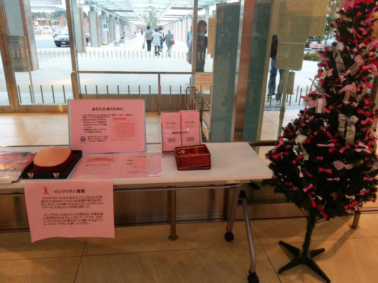 あのね、がんセンターに、ピンクリボンツリーがあるんだって〜
