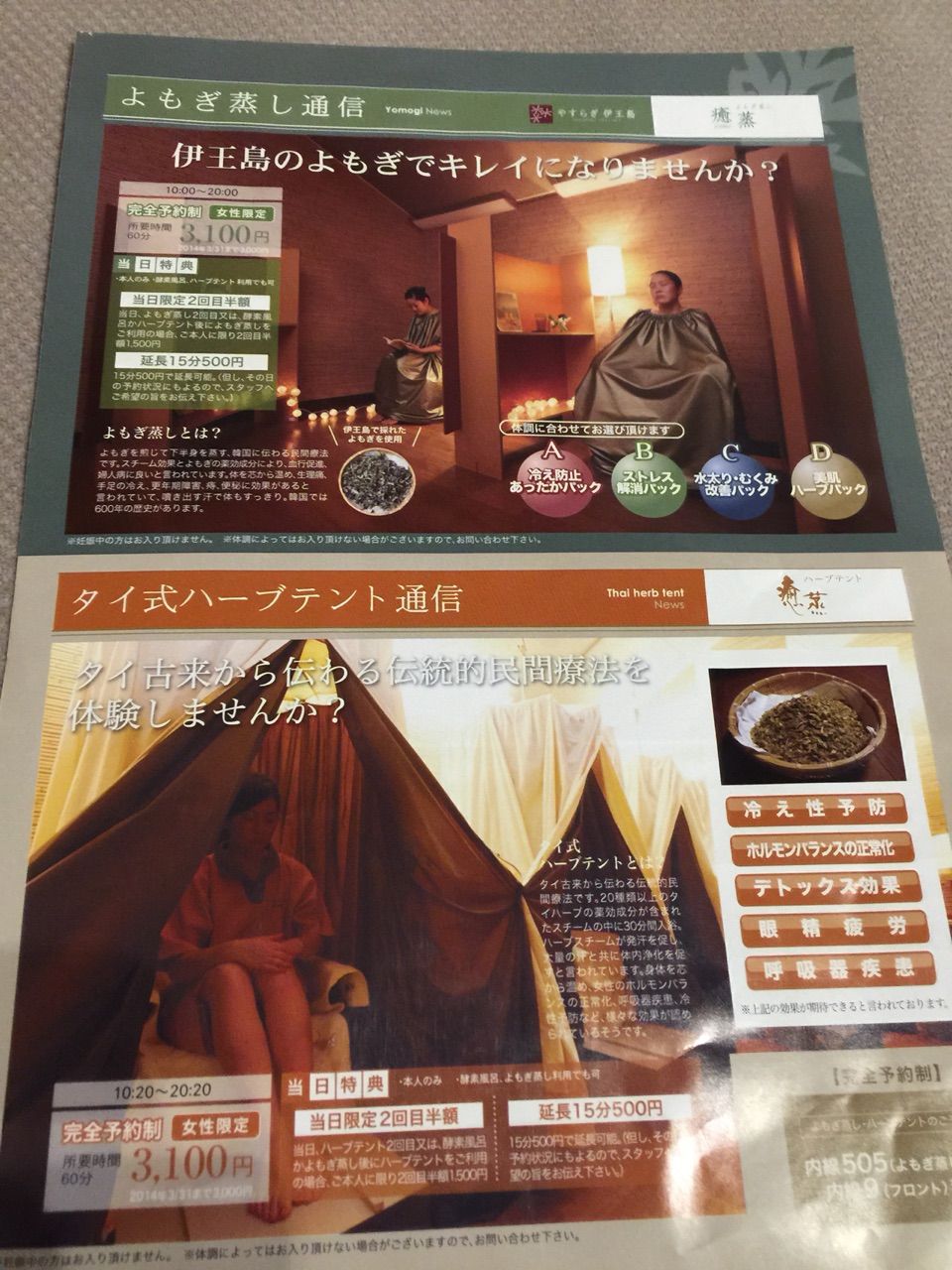 酵素風呂か、よもぎ蒸しか、ハーブテントか悩んだか末に、ハーブテントにした。