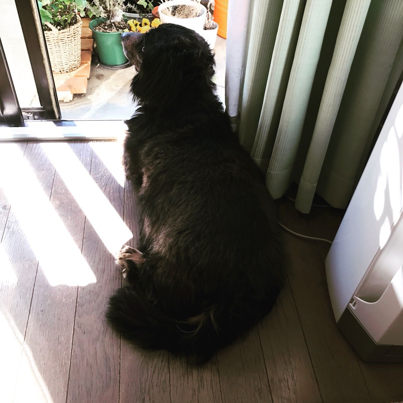 中庭は緑がたくさんあるので、じゅんくんは鼻をクンクンさせて、一生懸命匂いを嗅いでいた。