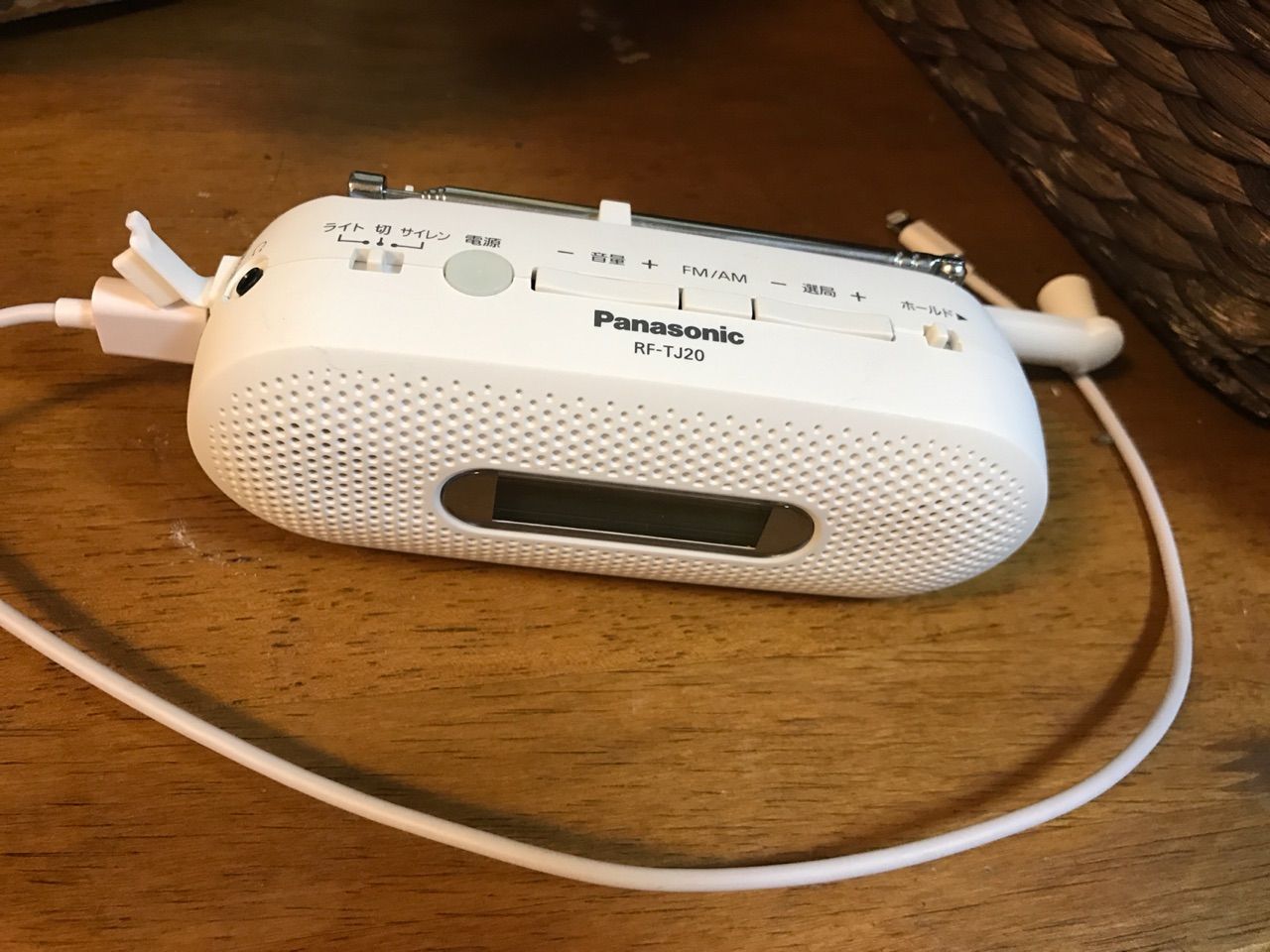 手回し充電ラジオ、スマホの充電もできて便利。