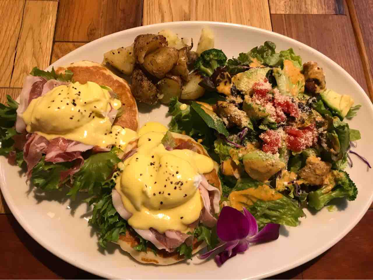 私はエッグベネディクト(パンケーキをチョイス)