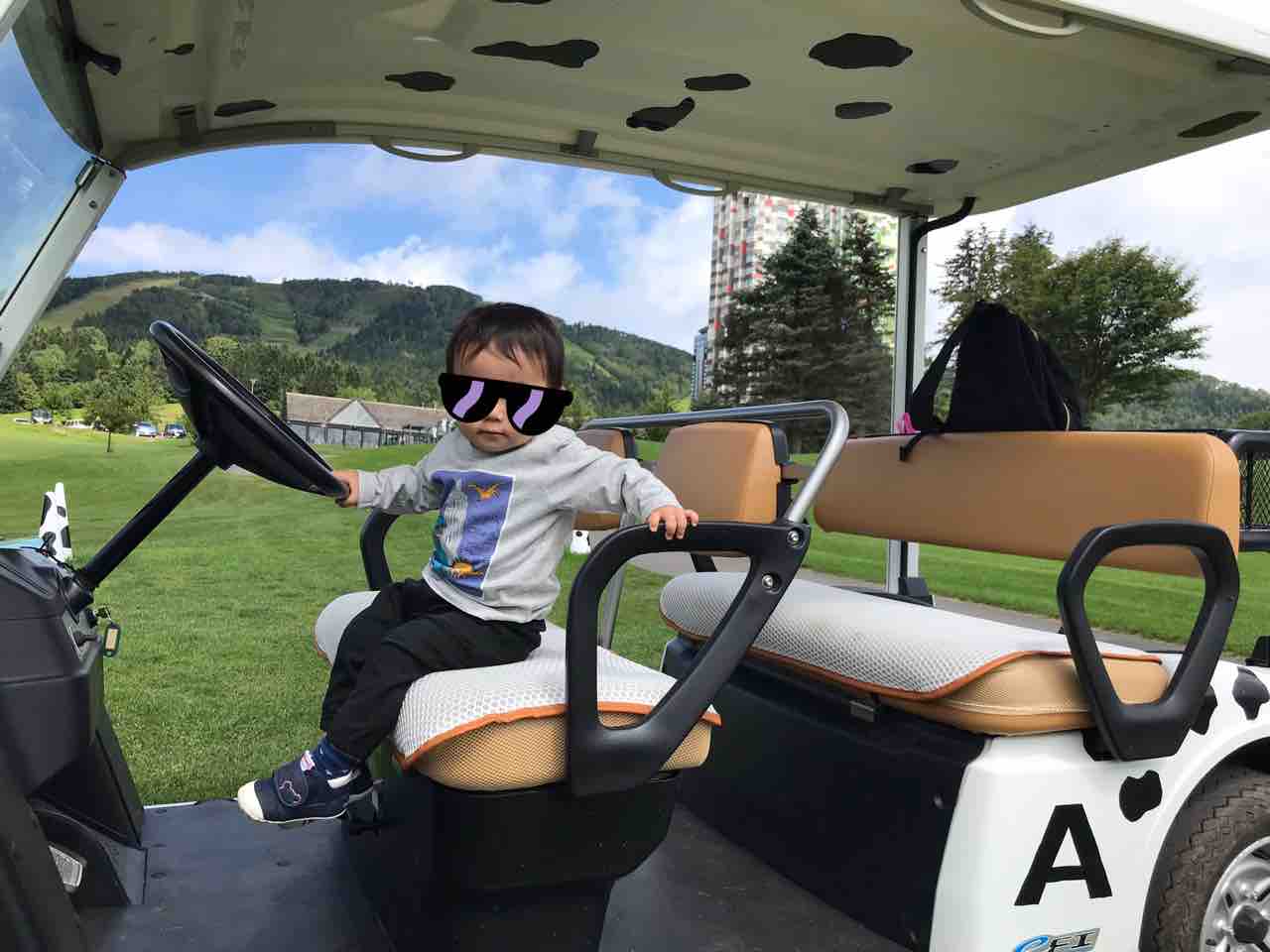 その後ザ・タワー前のファームに移動して、モーモーカートに乗りました❣️