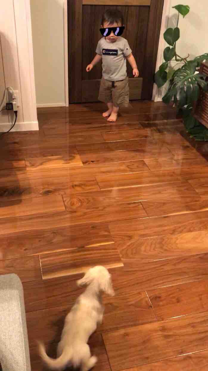 買ってもらった新しいおもちゃをくわえて、走り回るカイくん(笑)