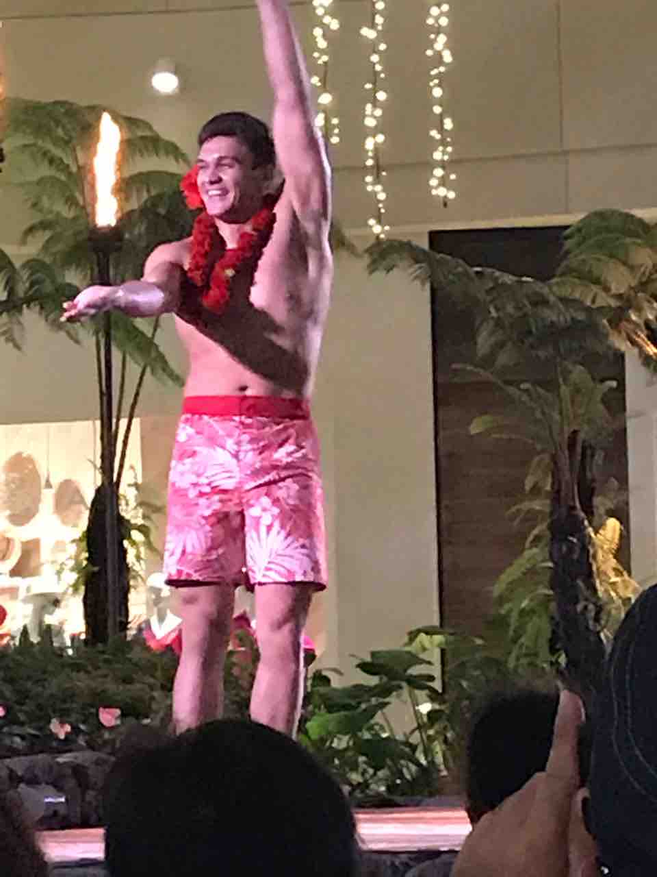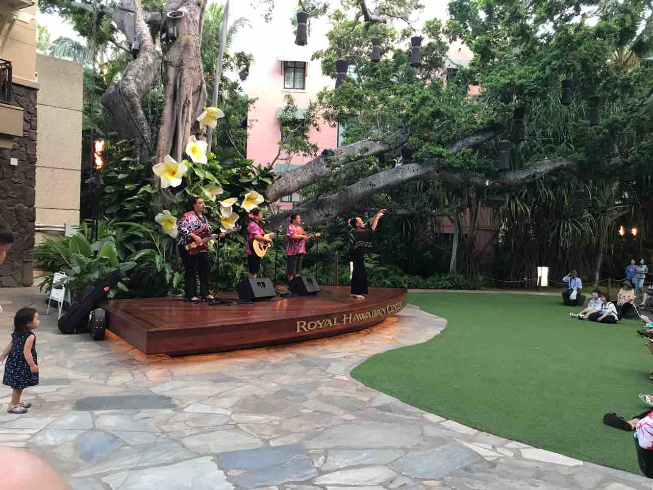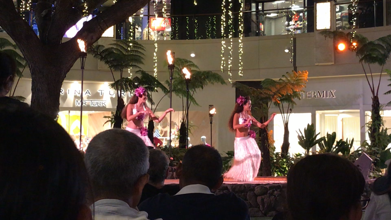 調べたら18:30となっていたので向かっていたら、ロイヤルハワイアンショッピングセンターのステージで、フラショーが始まっていました。