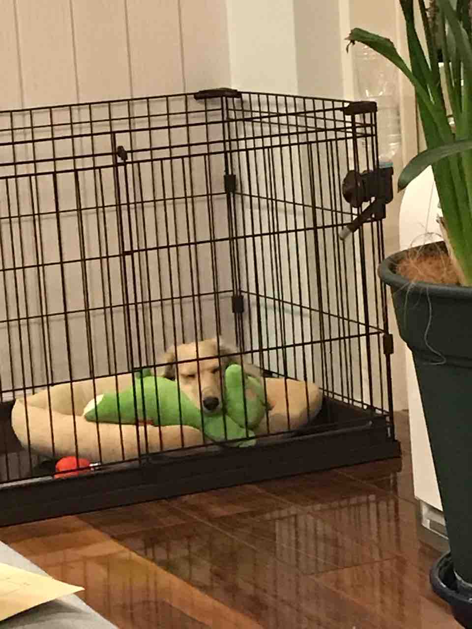 おすわりと伏せを訓練中で、おうちでも頑張って練習してます。