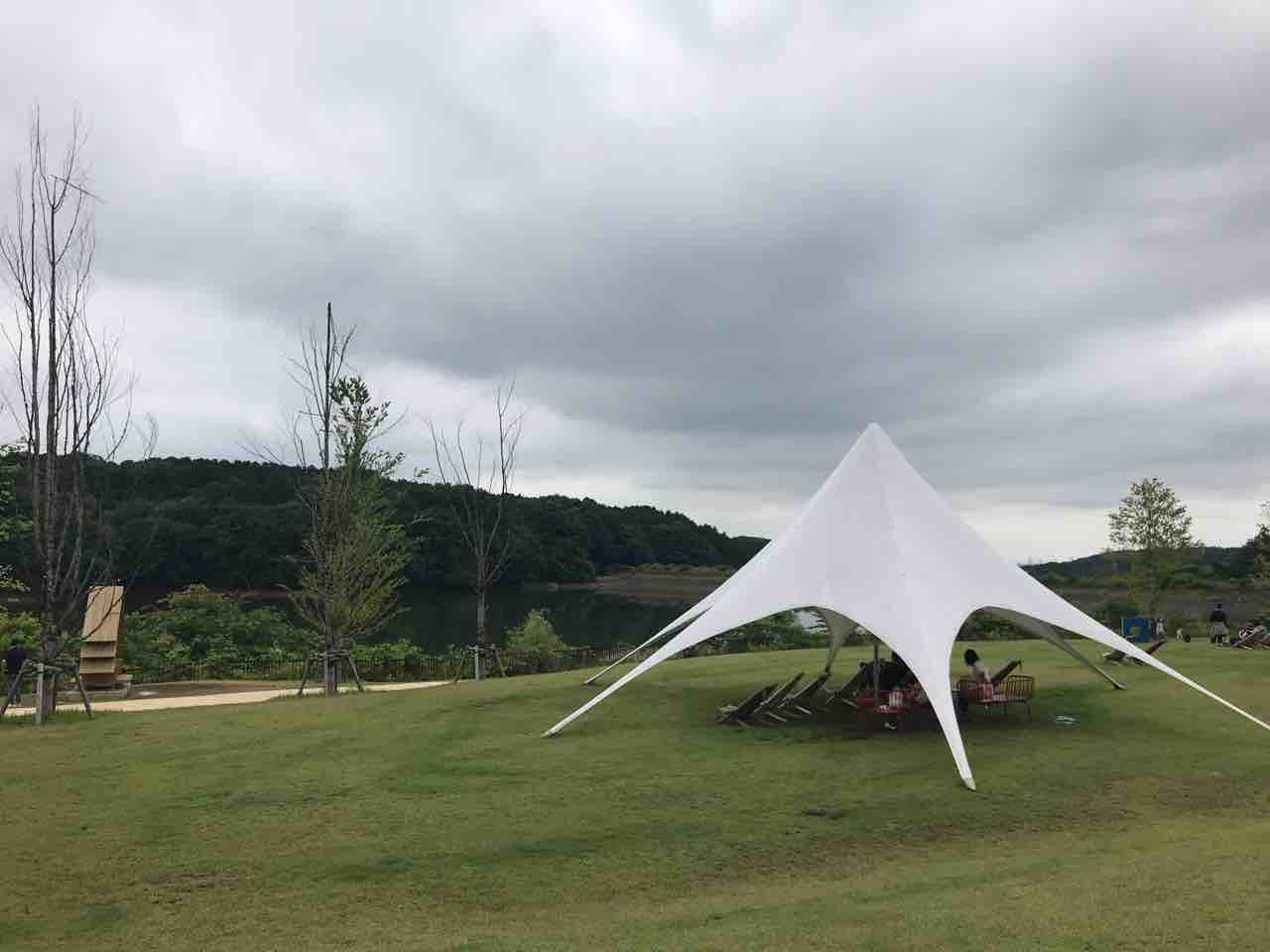 雨や夏の日差しを避けられるテントができていました。