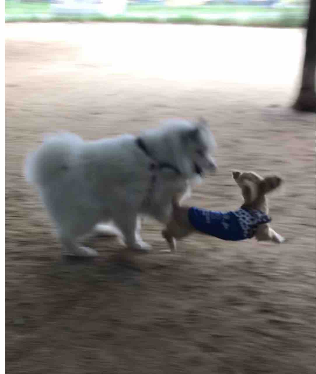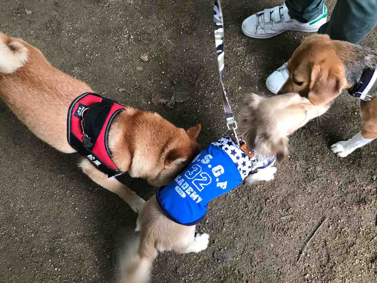 幼稚園では誰とでも仲良くできるけれど、ドッグランではどうかなぁ〜(^◇^;)