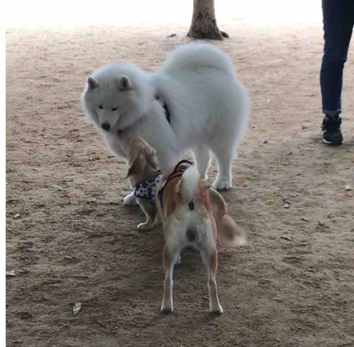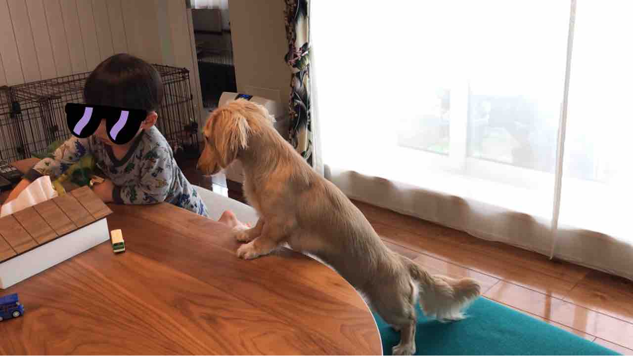 しばらくしっぽが下がったままでしたが、そのうち自分からお友達のところに近寄って行きました。