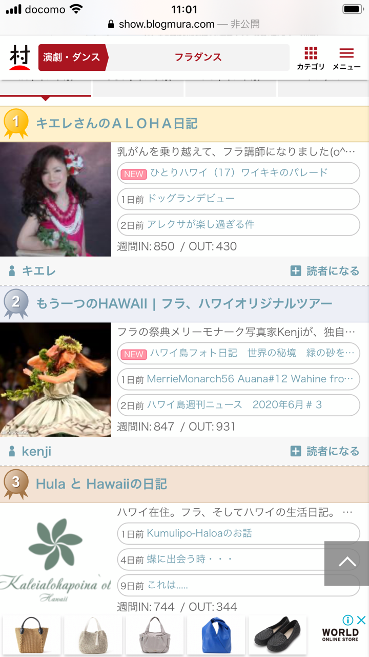 あ、今日の昼間、一瞬だけランキングが1位になりました笑
