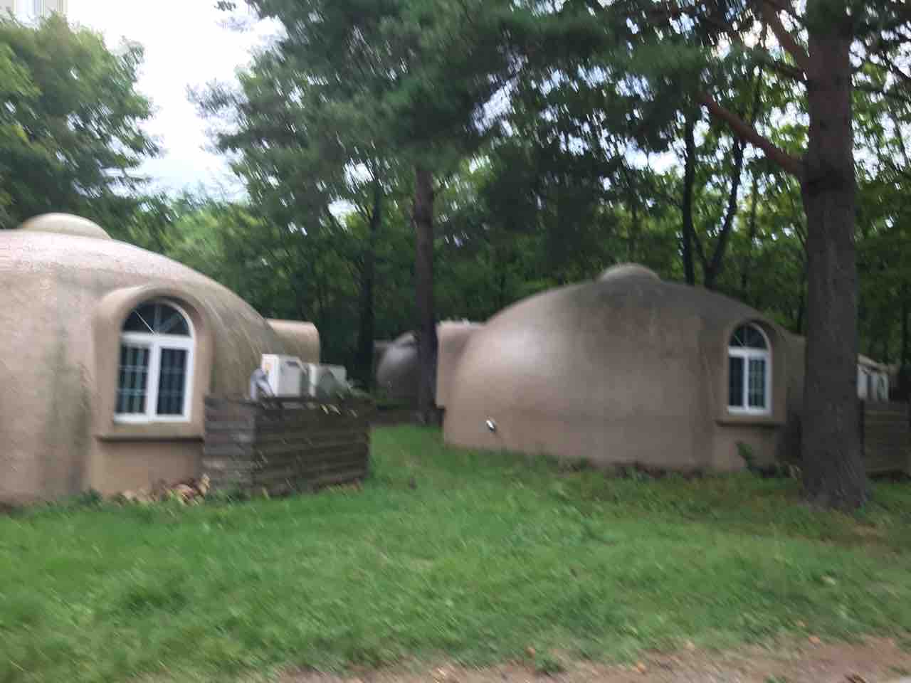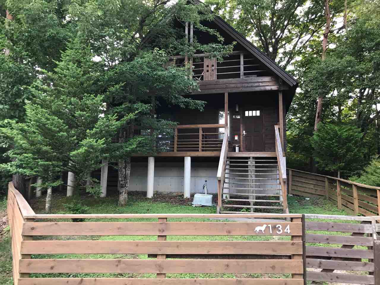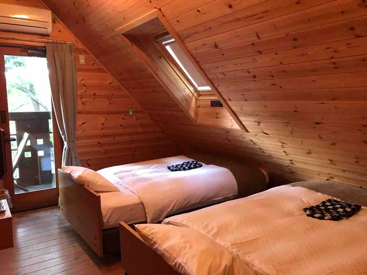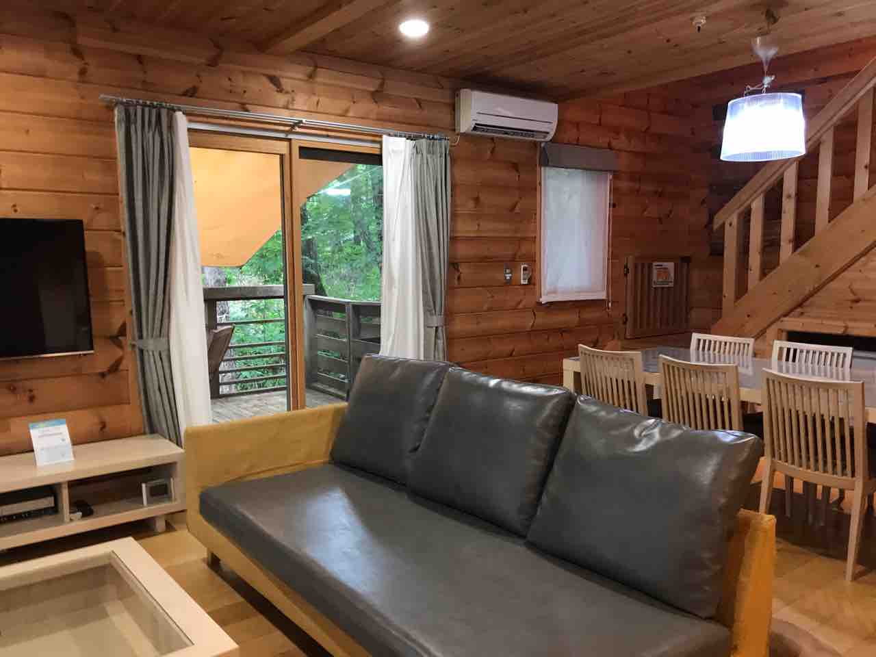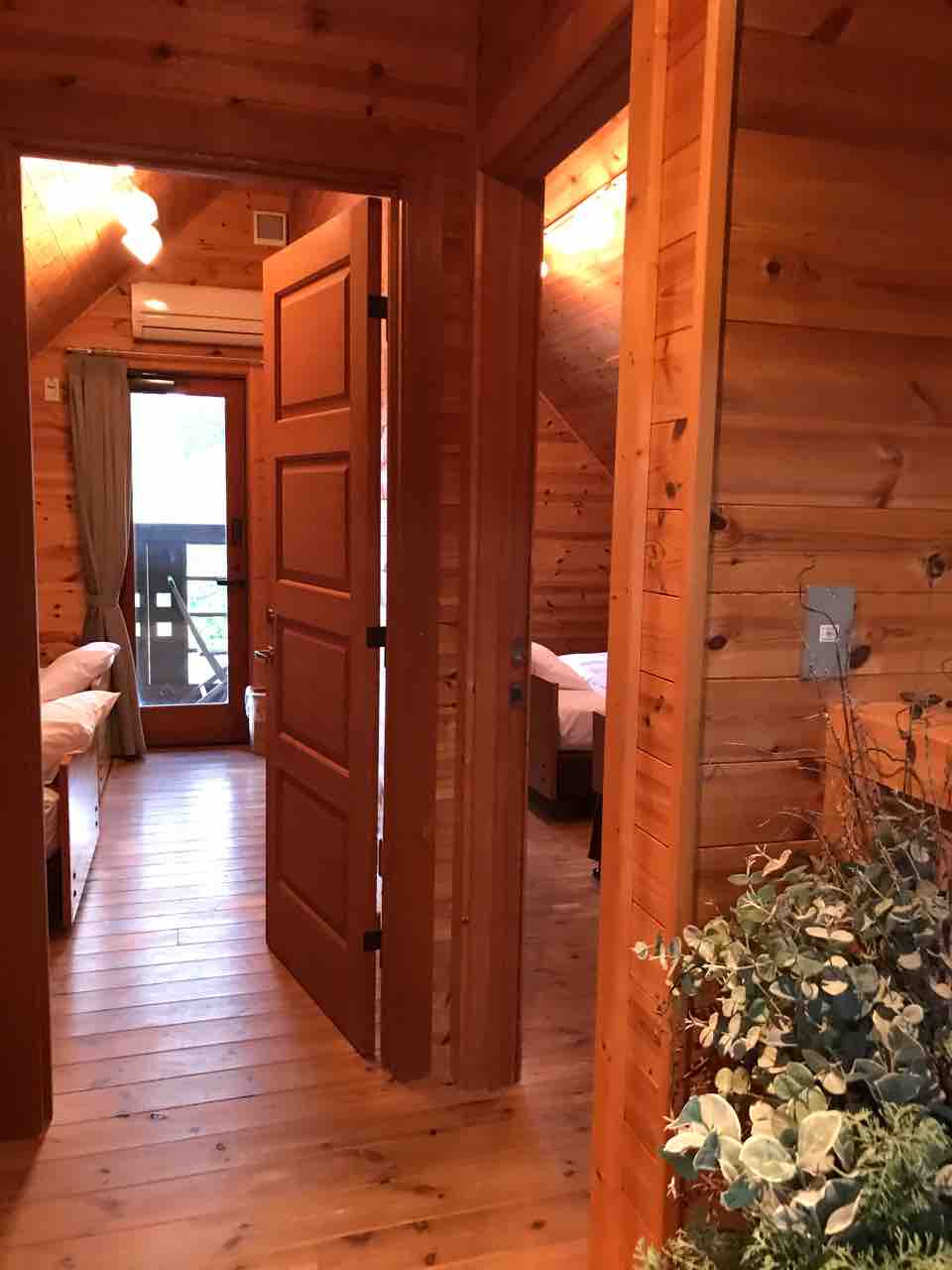 湖の周りに、ログハウス、ドームコテージやキャンプサイトがありますが、私が選んだのは2階建てのログハウスです。