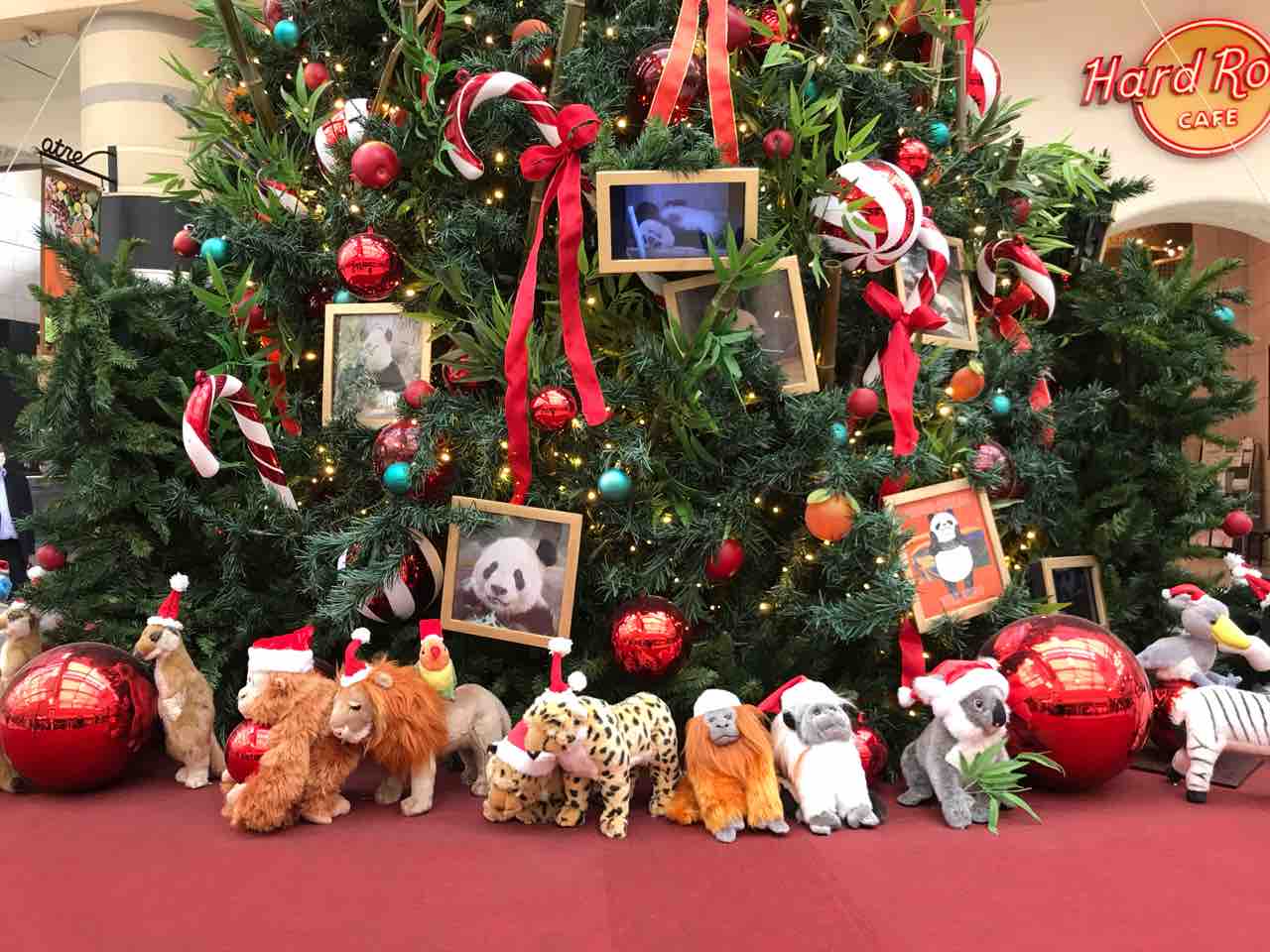 ツリーの周りに、たくさんの動物がいて、、