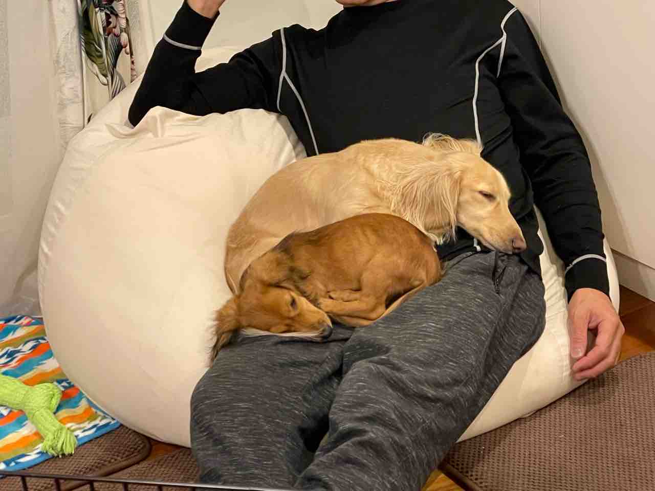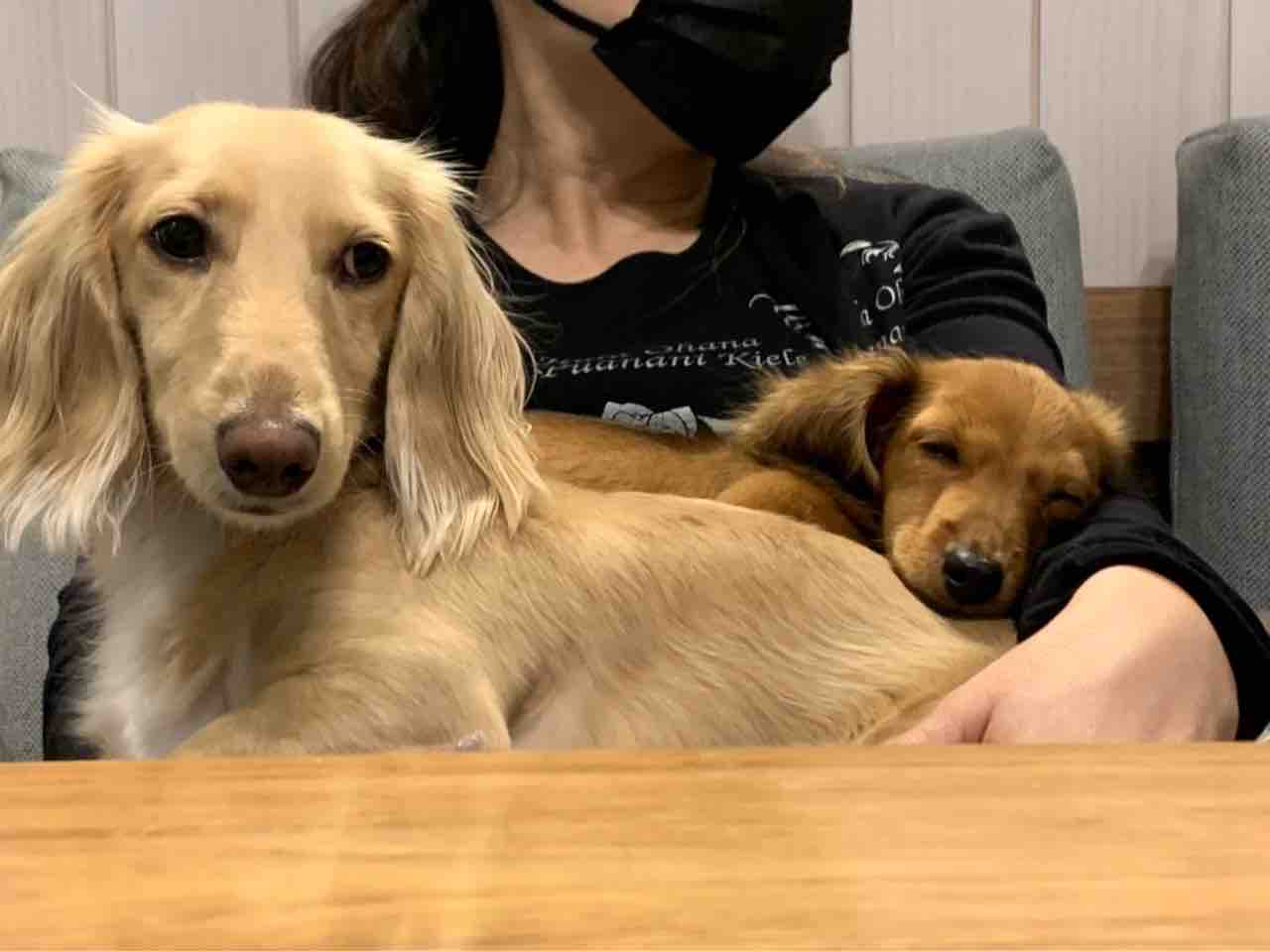 二人とも、私の膝の上にいるから重い💧
