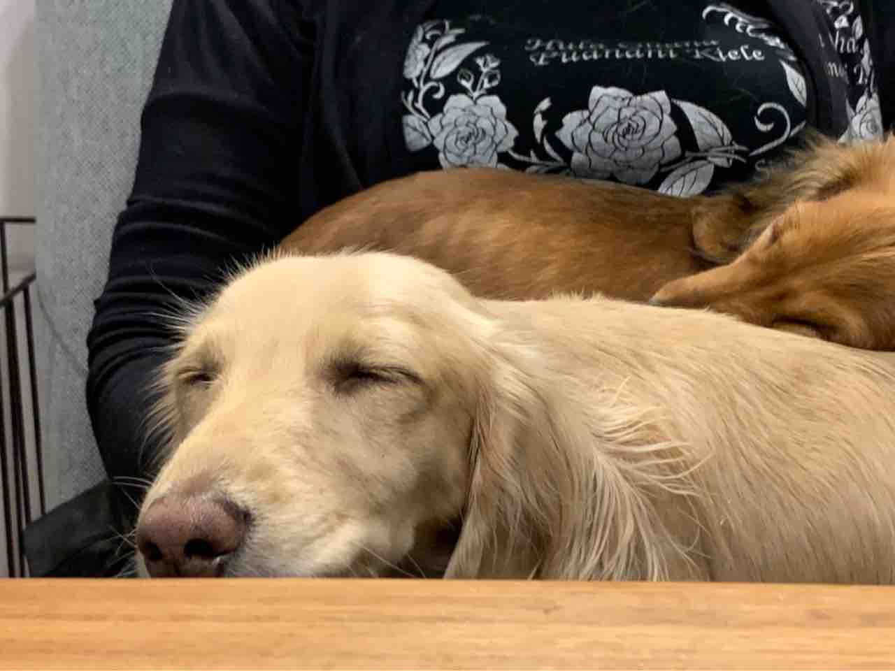 人間たちが話し込んでいたら、二人は寝てしまいました。