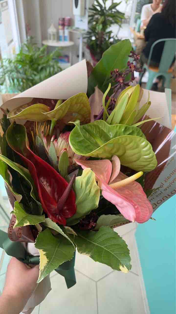 私がよく行くモラージュのお花やさんの店員さんがお花をくださったそうです。