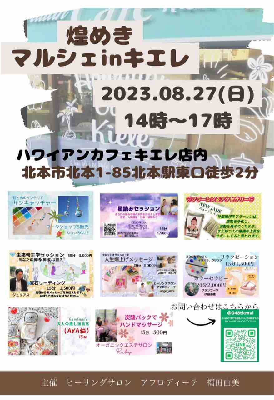 8月最後の日曜日、ぜひカフェキエレに遊びにいらしてくださいね💕