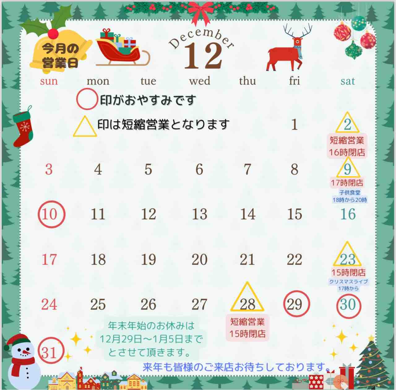 12月の営業カレンダーです↓