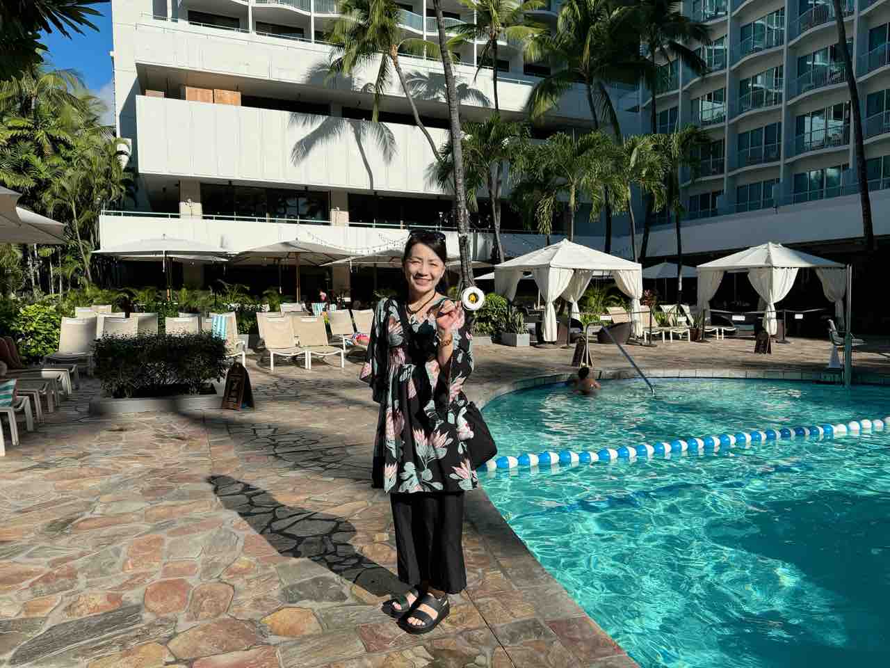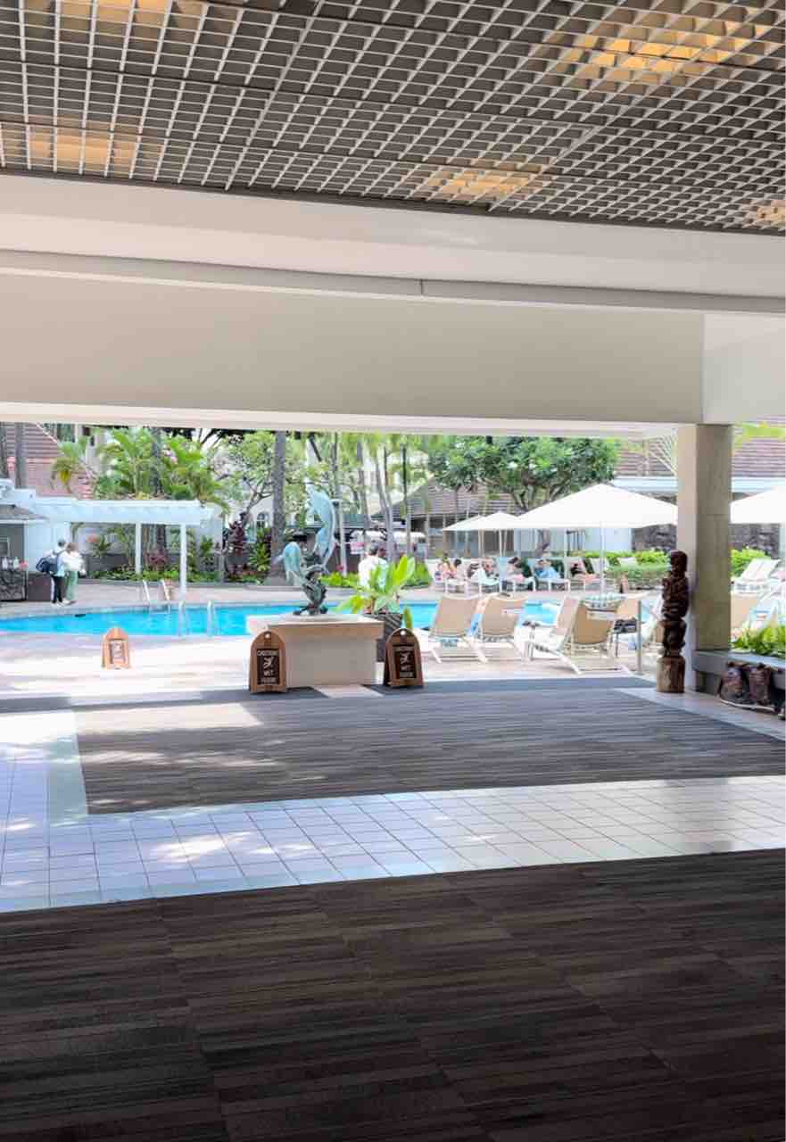 このプールの横を通ってカラカウア通りに出るのが好き❤️