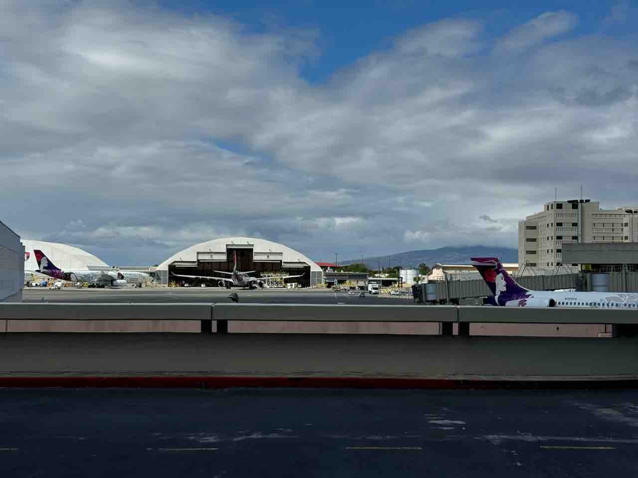 あっちはハワイアンの小さい飛行機がいっぱい。
