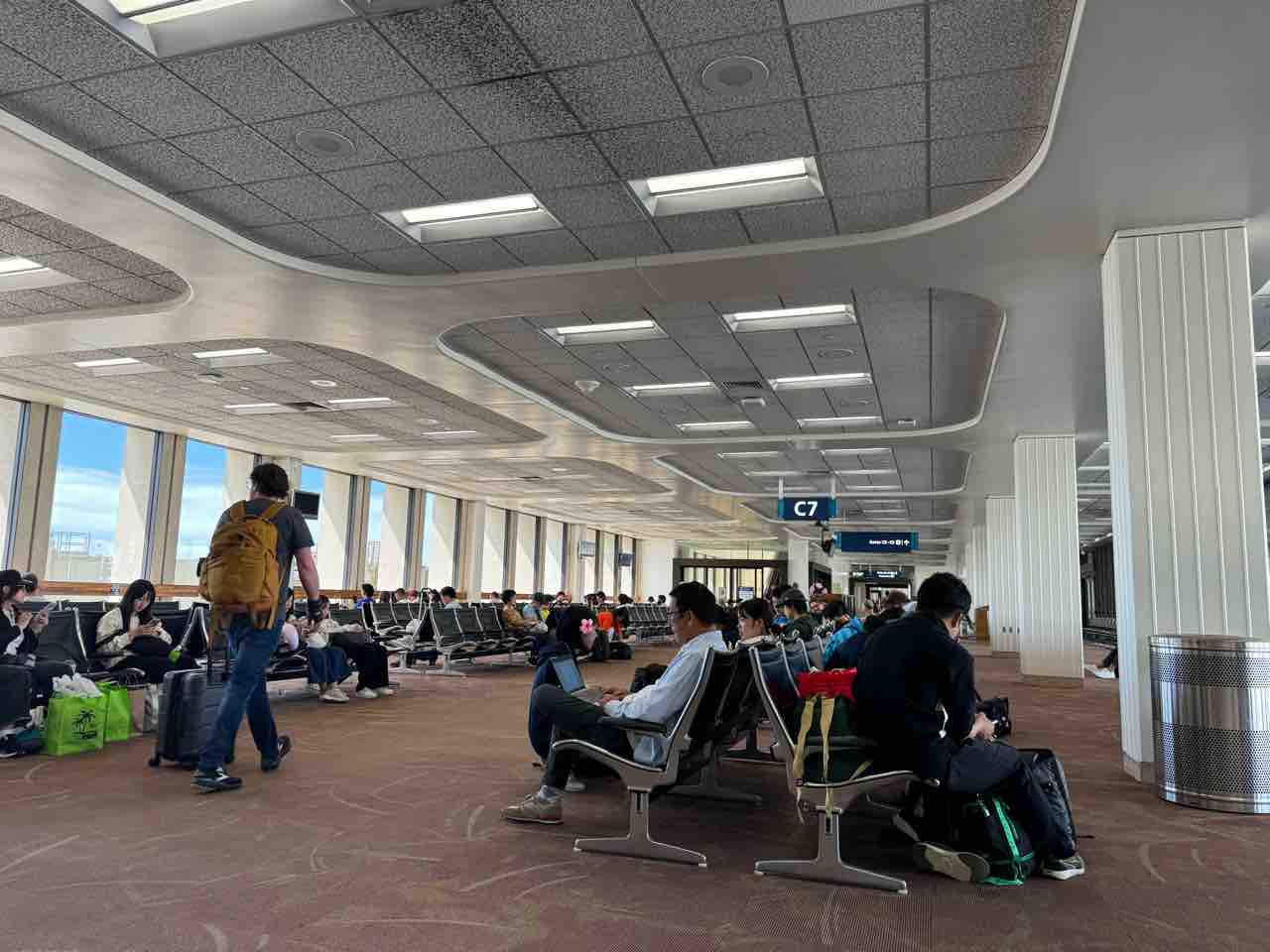 ハワイアンは搭乗口が遠くて、延々と歩く