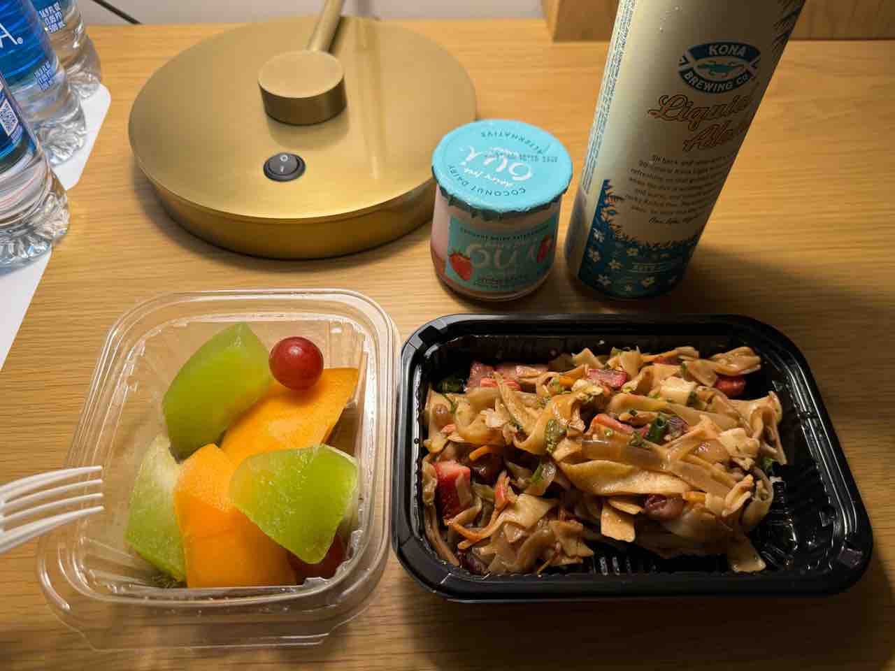 昨日ドンキで買っておいたパンとフルーツ、それとゆうべの残り笑