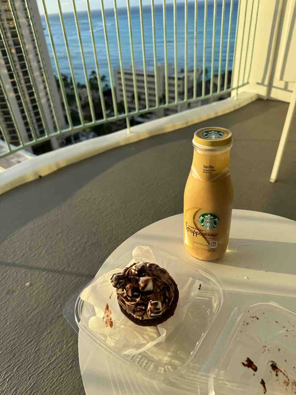 昨夜リリハベーカリーで買っておいたマフィンと大好きなスタバの瓶のコーヒーで