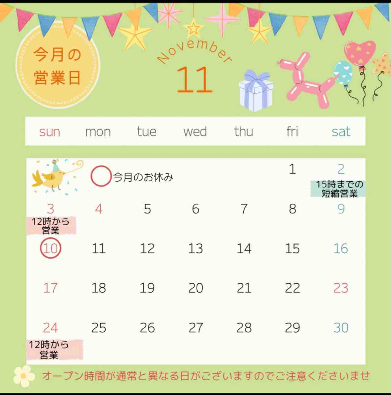 11月のカレンダーです。