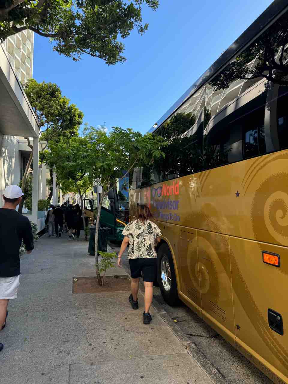 こういうバスに乗って、よくオプショナルツアーに行ったっけ。