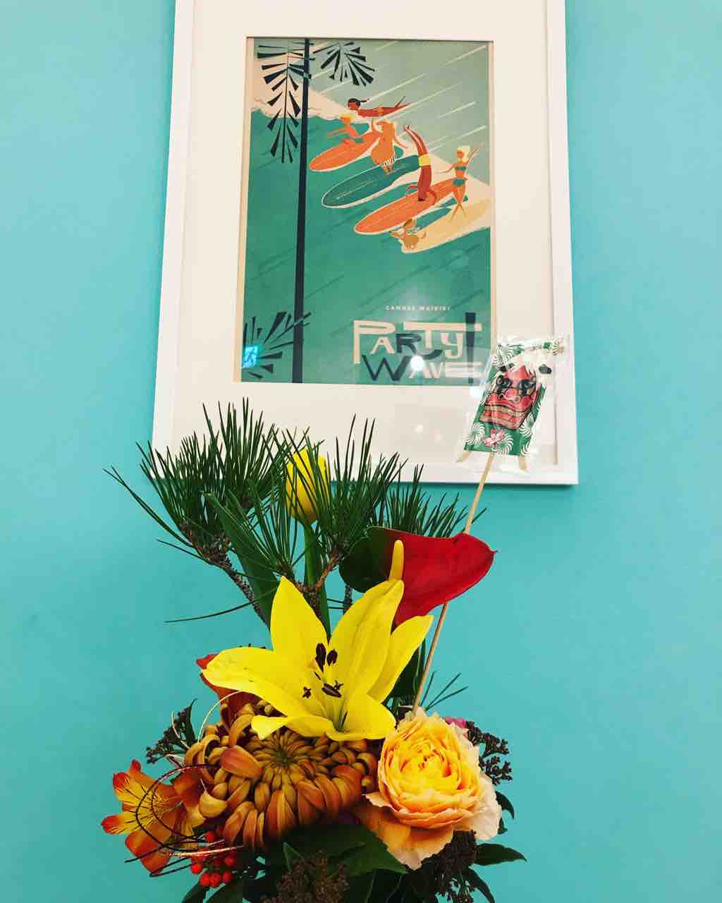 この二つは、モラージュのお花屋さんでハワイ風にとお願いしたものに、少し自分で足しました