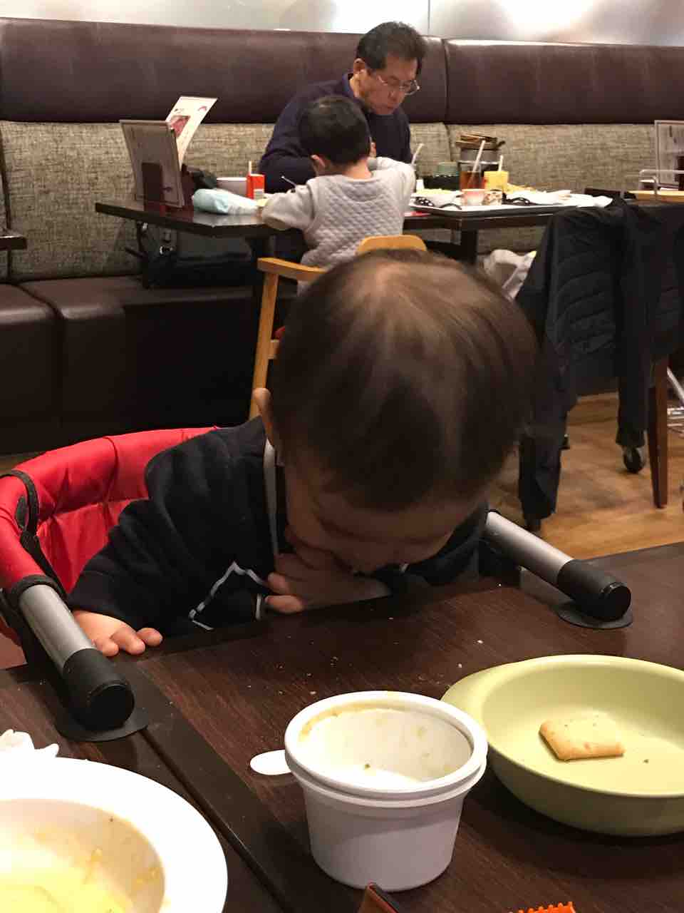 はしゃぎ過ぎて疲れたのか、Mくんはごはんを食べながら睡魔に勝てず寝てしまいました^_^