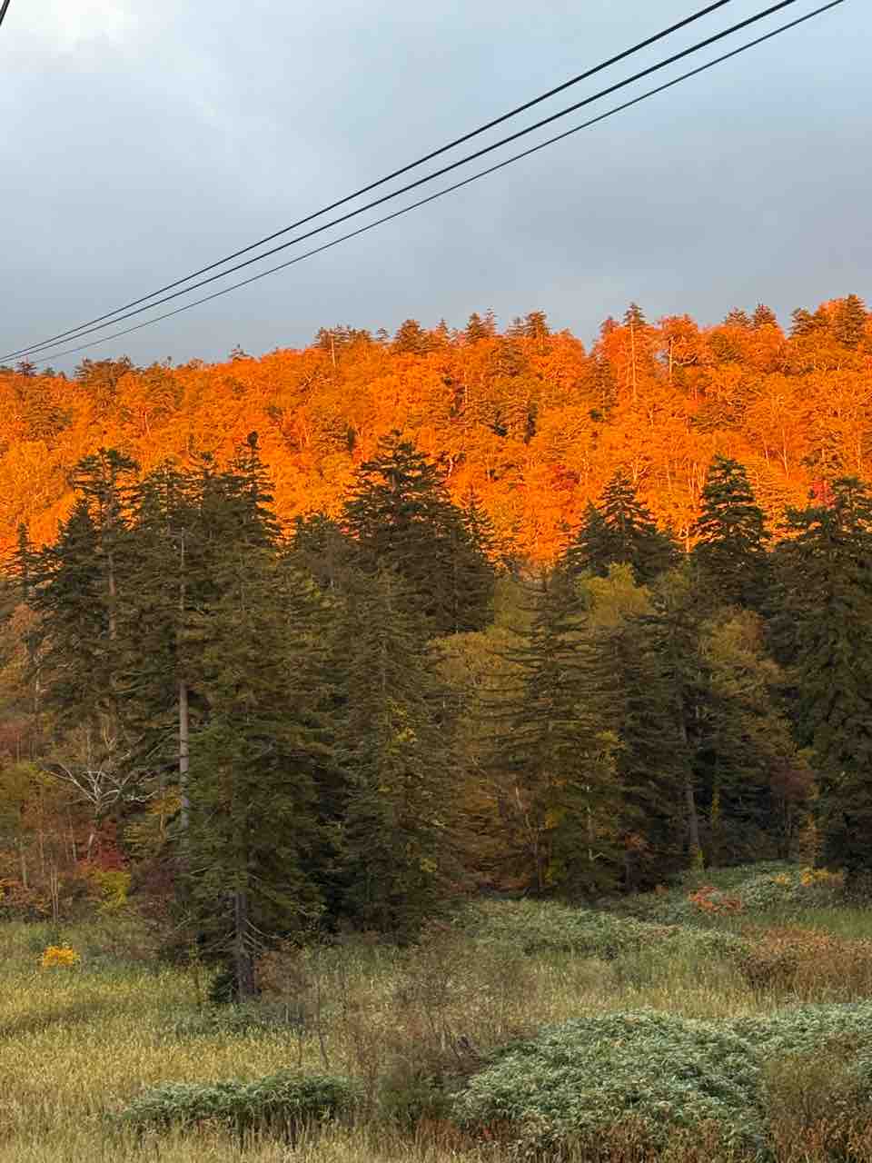 夕陽に照らされた旭岳の紅葉🍁