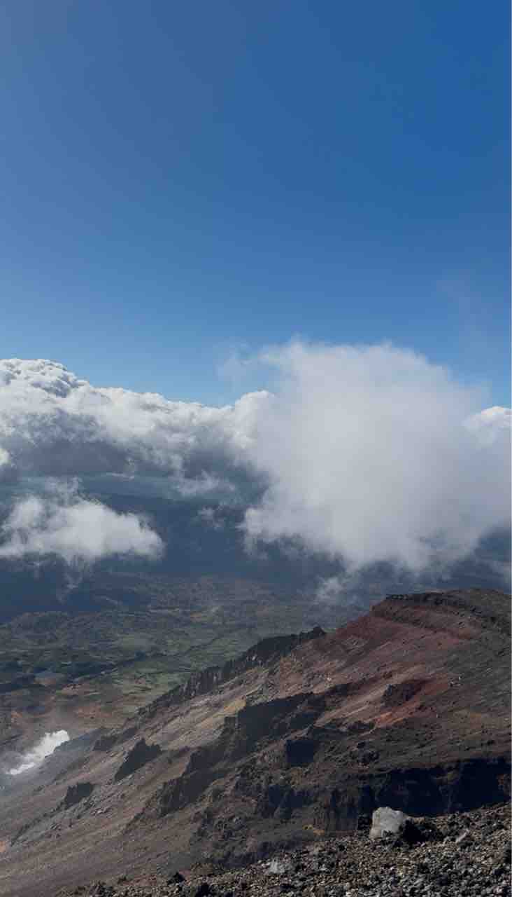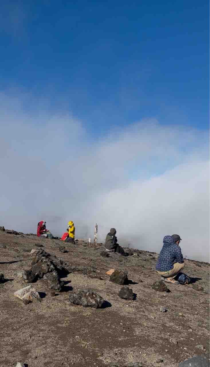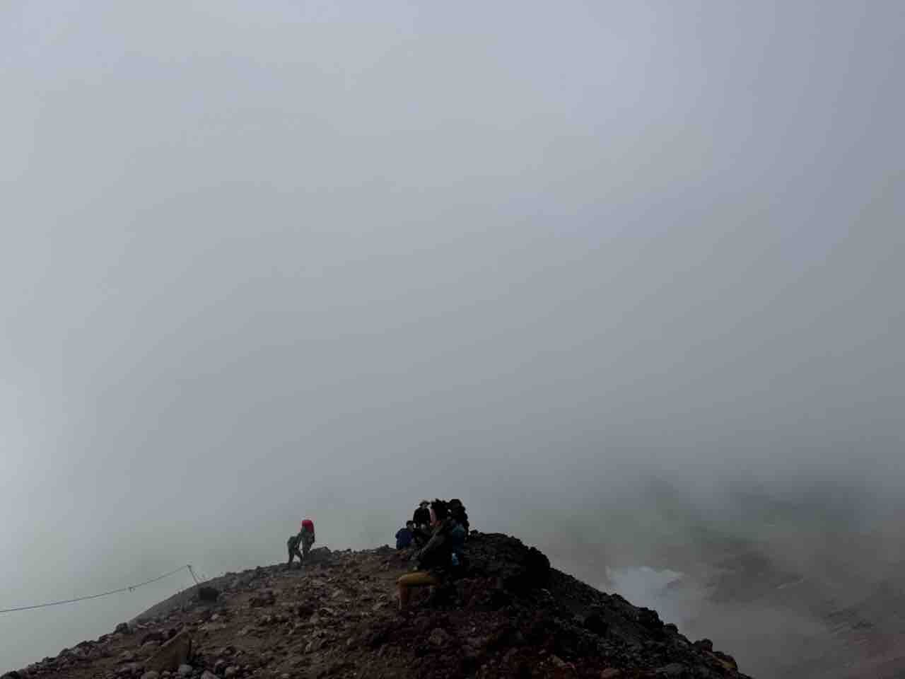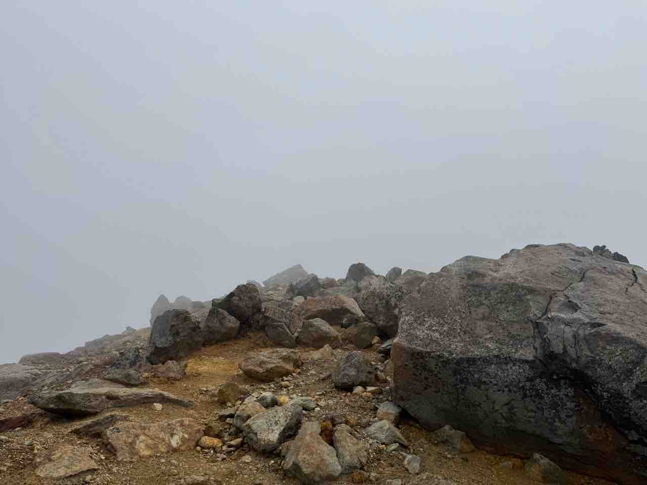ガスで真っ白な中、岩に座って休憩しながら、「なんで私はここにいるんだろ?」なんて考えたりして。