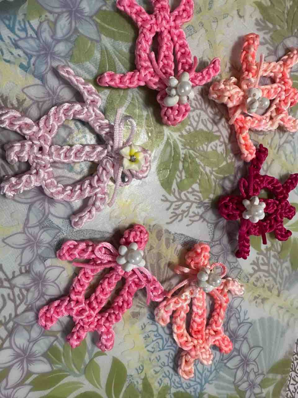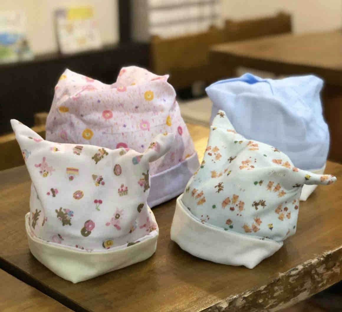 ピンクリボンフラガールの売り上げは、抗がん剤で脱毛してしまった方のための、ガーゼ帽子を縫う会に全額寄付になります。