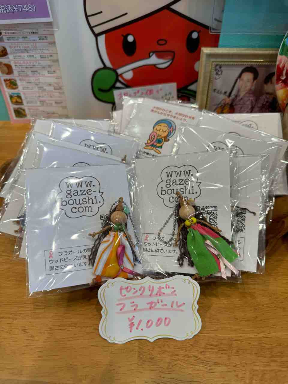 ガーゼ帽子を縫う会のYさんから、とりあえず、ピンクリボンの啓発のフラガールのお人形を購入させていただきました。