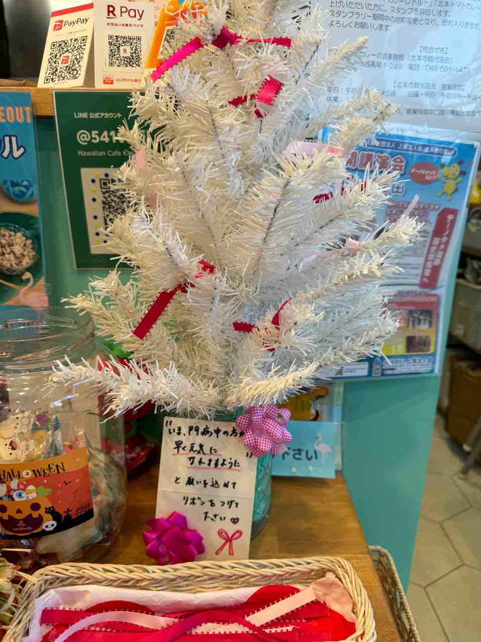 ピンクリボンツリーに、みなさんリボンをつけてくださいね❤️
