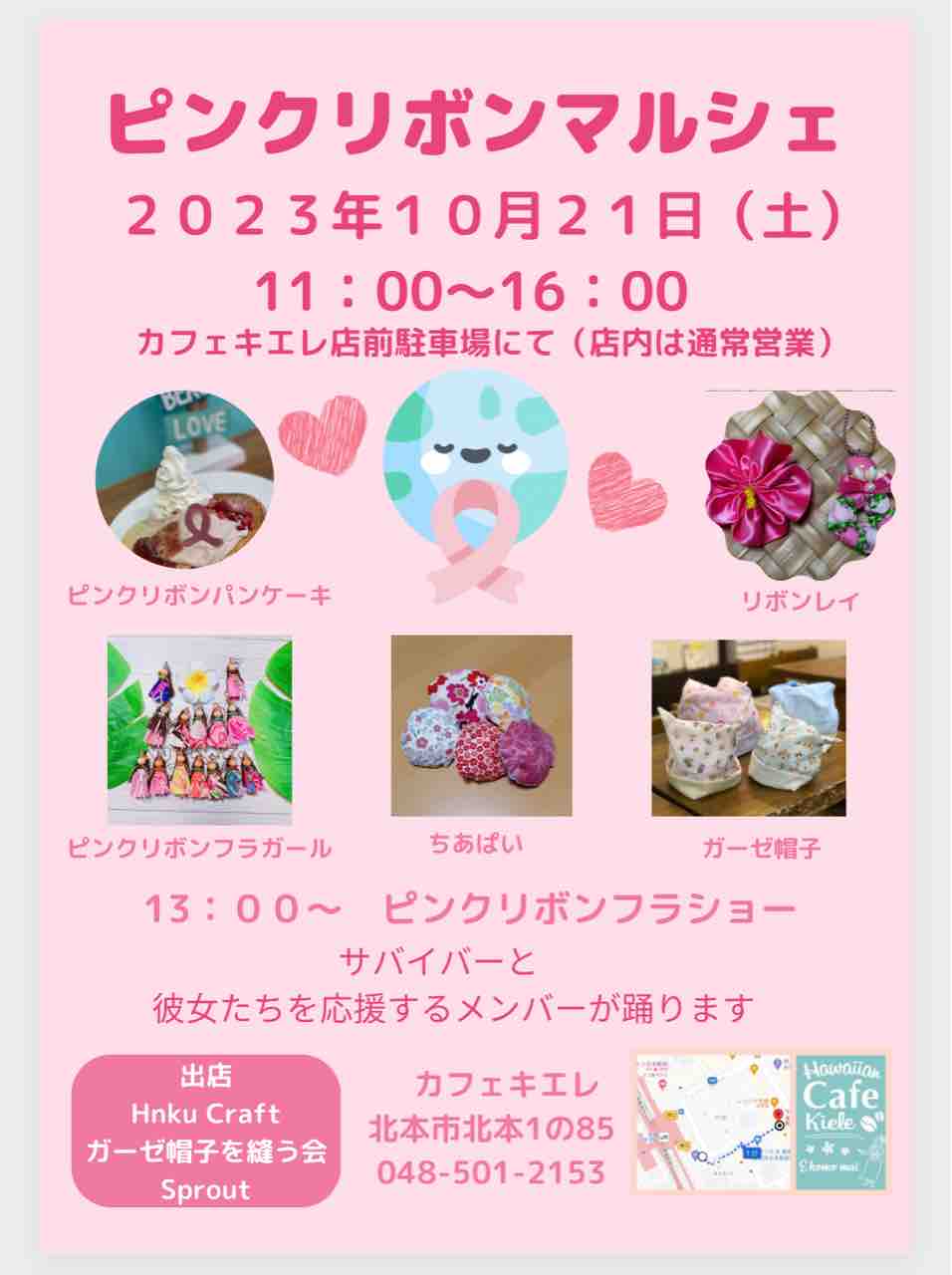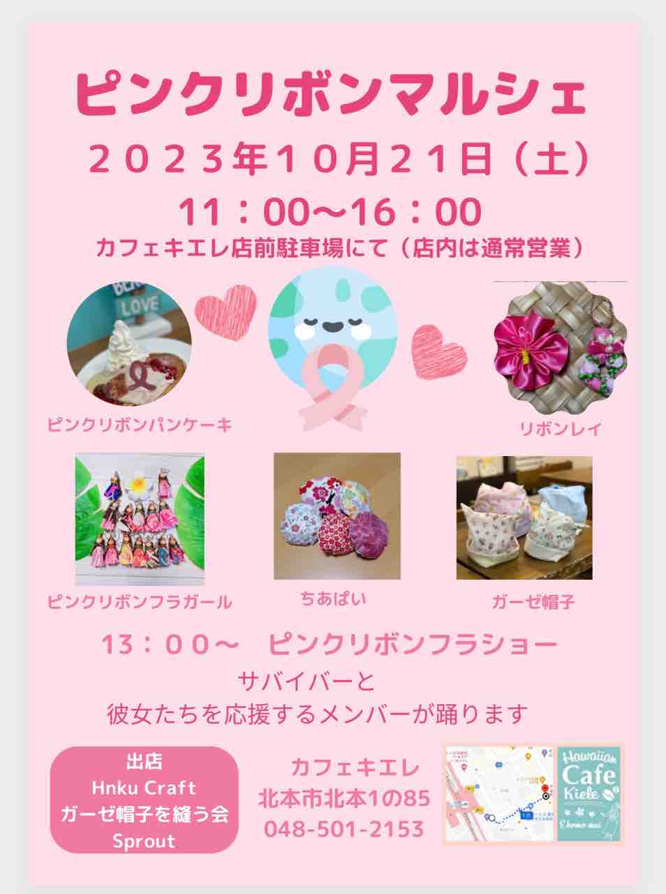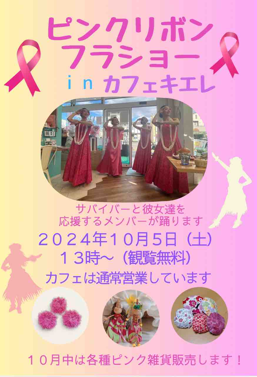 はじめは、ピンクリボンマルシェとか考えたけど、10月もフラやカフェのイベントがいっぱいで