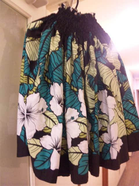 以前一緒に恵比寿に行ったときに私が選んだ生地で、今フラ仲間で流行っている?2WAYスカートを作ってきてくれました