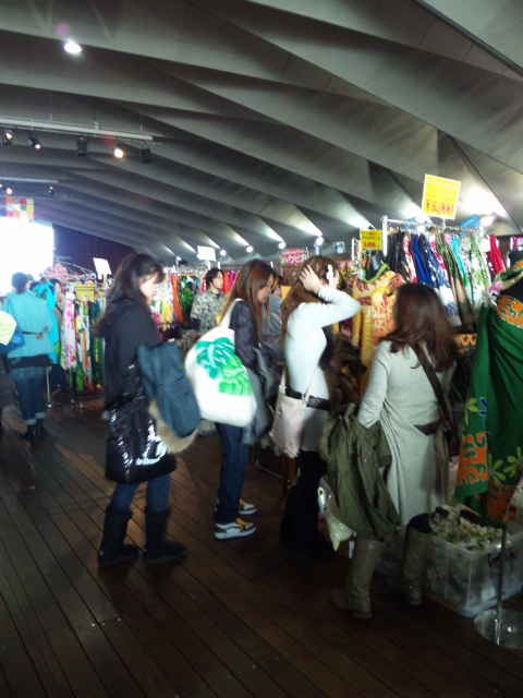 ステージの前にはいくつかの椅子が用意されていて、その後ろに飲食コーナー、さらに後ろに44ものハワイアンショップ