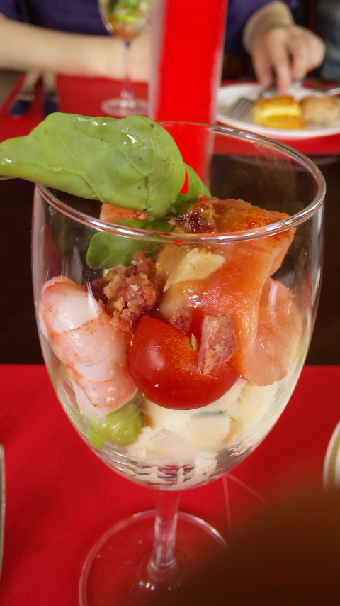 海老とサーモンと下のほうにおいしいポテトサラダが入ってました。